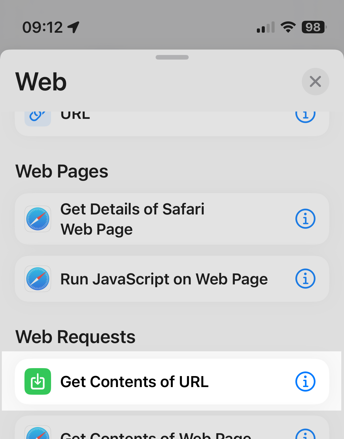 Then select Get Contents of URL.
