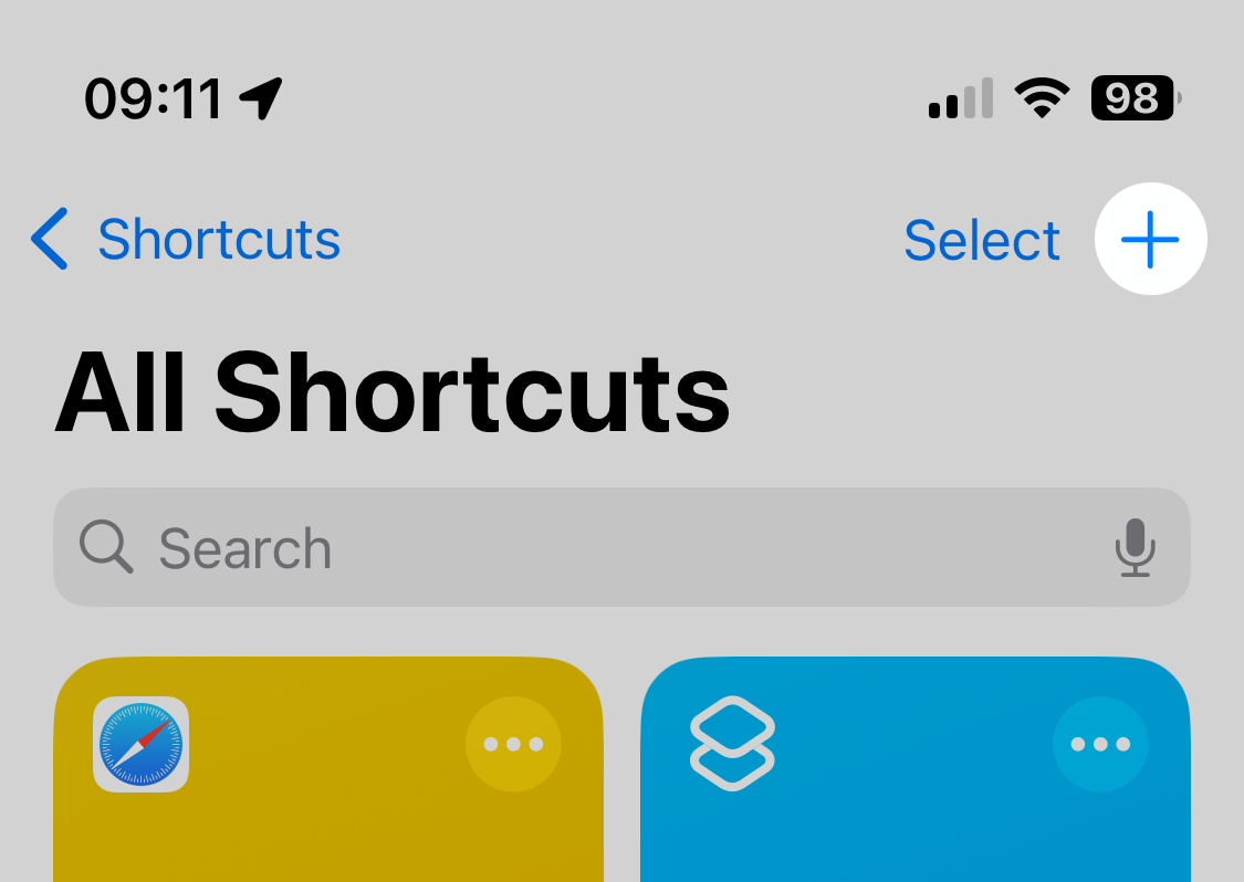 Open the Shortcuts app, and tap the + button.